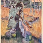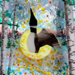 Using birchbark sourced at her lakeside home, Ingrid creates textural landscape paintings as well as artworks painted on glass.