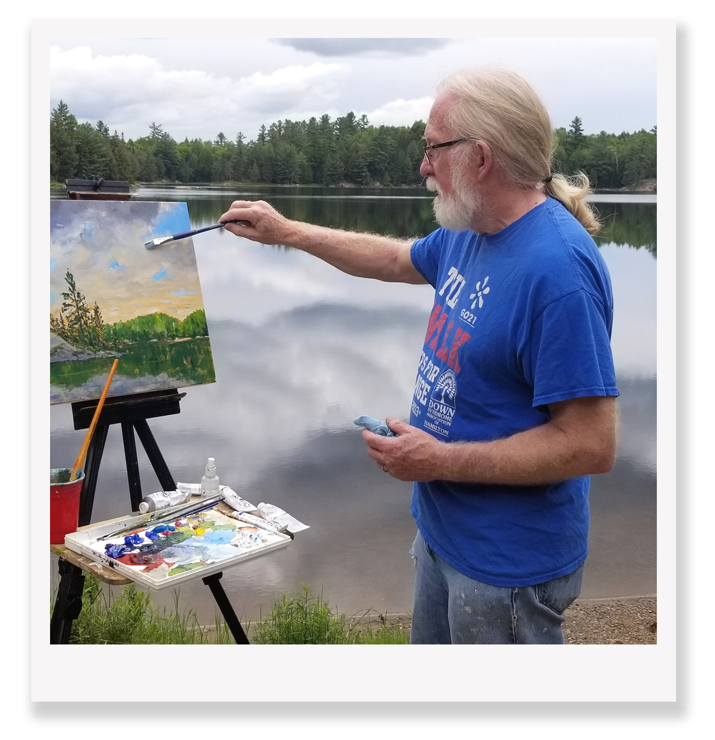 Born in Hamilton and raised in nearby Dundas, Ontario, now-Bancroft-area plein air painter, John Christie recalls public school friends—including eventually well-known singer/musician, Ian Thomas—excitedly taking music lessons. But being “tone deaf”, John opted to take art lessons instead. And his very first work of art—a portrait painted in poster paint (gouache)—was included in an art show! However, even after further art lessons in public school, his high school years were academically focused with a career in engineering as his goal. And it wasn’t until 25 years later that art became an integral part of his life. Christie studied the first year of chemical engineering at the University of Waterloo but dropped out and learned and began practicing the skill of lab technician at Stelco Hamilton beginning in 1970. It was a boring, geeky job but he took advantage of his latent creative skills to be an innovator in the profession–enhanced by night school classes at Mohawk College–learning the building of metallurgical prototypes and studying the application of electronics for his work at Stelco. Late in that career and on a whim—and encouraged by his second wife, Debbie—Christie decided to take art lessons at the Dundas District School of the Arts—enrolling in the portrait painting class. This involved painting from live figures in a studio—a big challenge but one he took on with enthusiasm and the assistance of a skillful instructor. However, it was the move to painting en plein air (on location) under instructor, Catherine Gibbo, beginning in year 2000, that his ah-ha moment and religious involvement with art-making truly began. He had developed a love of the outdoors at a very young age and as an avid camper and canoe tripper learned to cherish time spent exploring new places or revisiting old. And with his burgeoning interest in plein air, his creating of paintings—first in oils then switching to acrylics—with organized groups in the great outdoors began. And he showed his work—in some solo exhibitions but, primarily, in numerous group shows in the Dundas/Burlington area, beginning in the mid-2000s. In 2020—right at the beginning of the pandemic—he and Debbie made the decision to purchase and move into his parents’ home on Paudash Lake. His parents had bought a cottage there in 1966 and he had spent much of his spare time since at the lake. He says: “To now be living in what was, for most of my life, my happy place is surrealistic.” After COVID had diminished adequately, he discovered the thriving community of artists and engaged in |